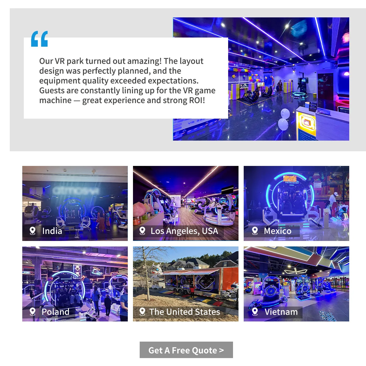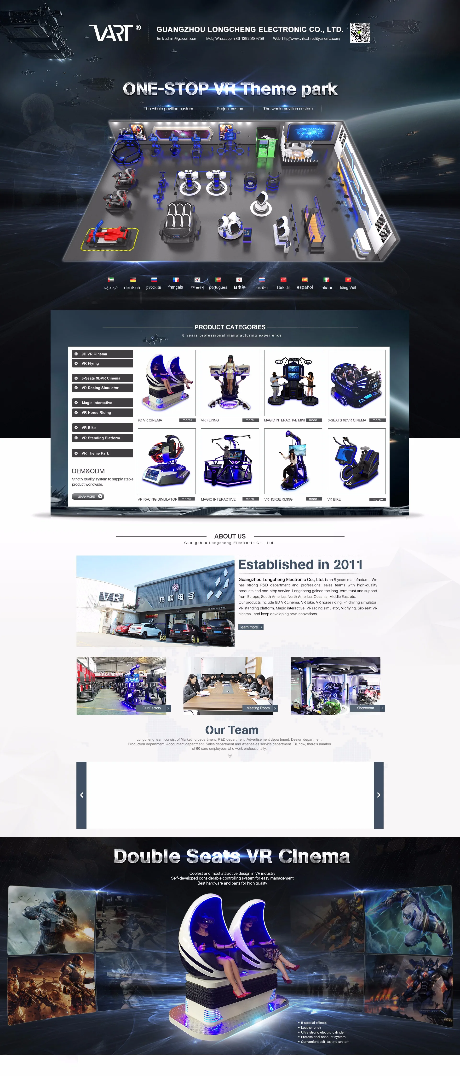 Main categories: VR Theme Park, VR Simulator, VR Fantasy Starship, 9D VR Cinema, Interactive VR Series